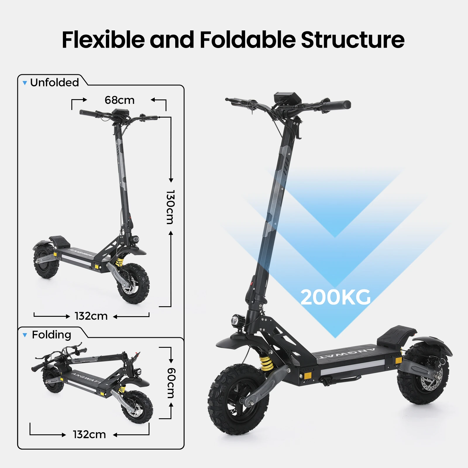 Το ANGWATT CS1 έχει frame απο κράμα αλουμινίου, με πολύ.. επιθετικό design, και βάρος 30 κιλάκια, που το κάνουν αρκετά βαρύ για να κρατάει καλά στο δρόμο, και αρκετά ελαφρύ για να έχετε ελπίδες να το πάρετε παραμάσχαλα, αν χρειαστεί.