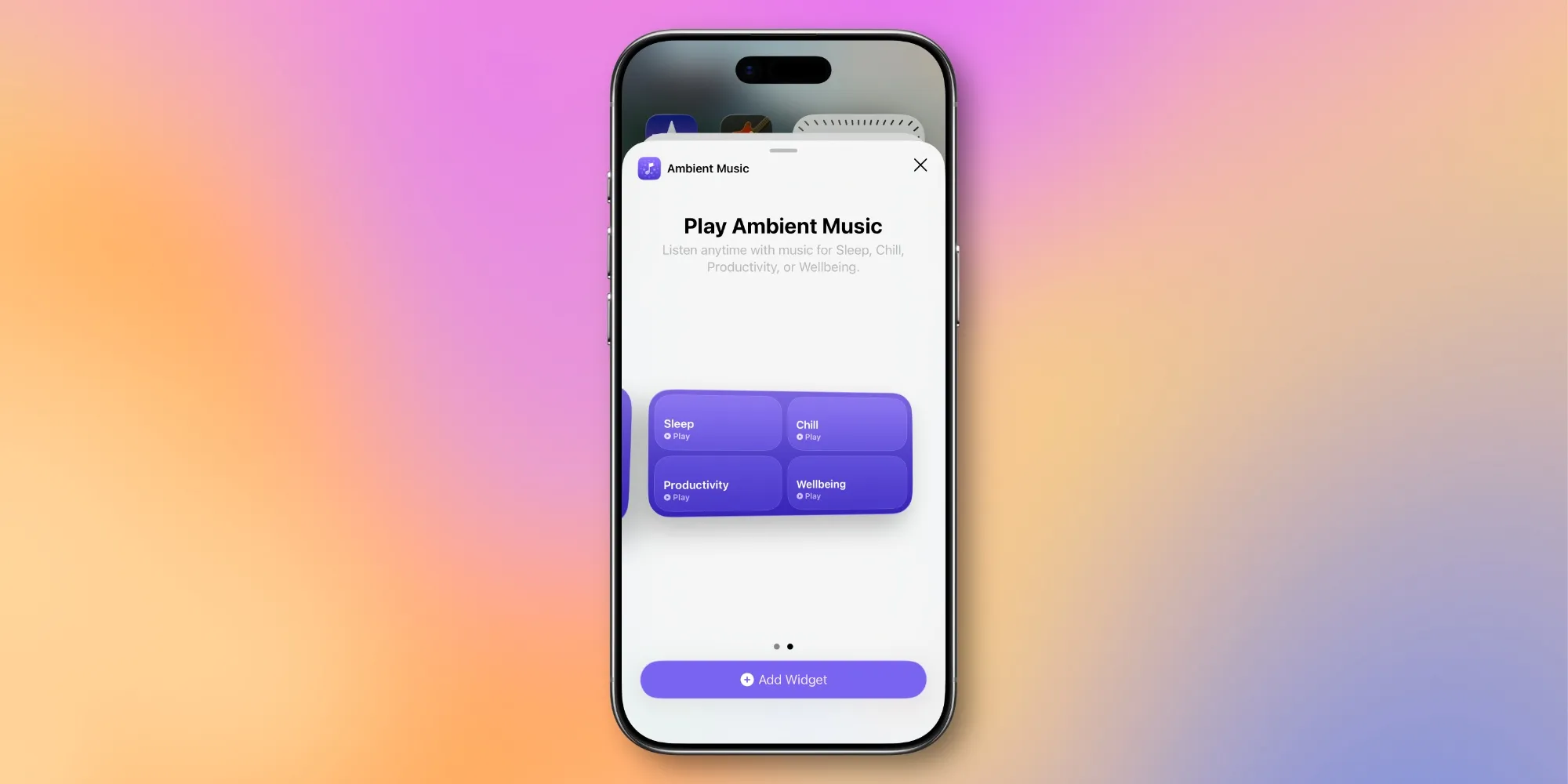 Τώρα στο iOS 26.4, η ίδια λειτουργία Ambient Music είναι διαθέσιμη μέσω των γραφικών στοιχείων της αρχικής οθόνης. Διατίθενται μικρά και μεσαία μεγέθη γραφικών στοιχείων.