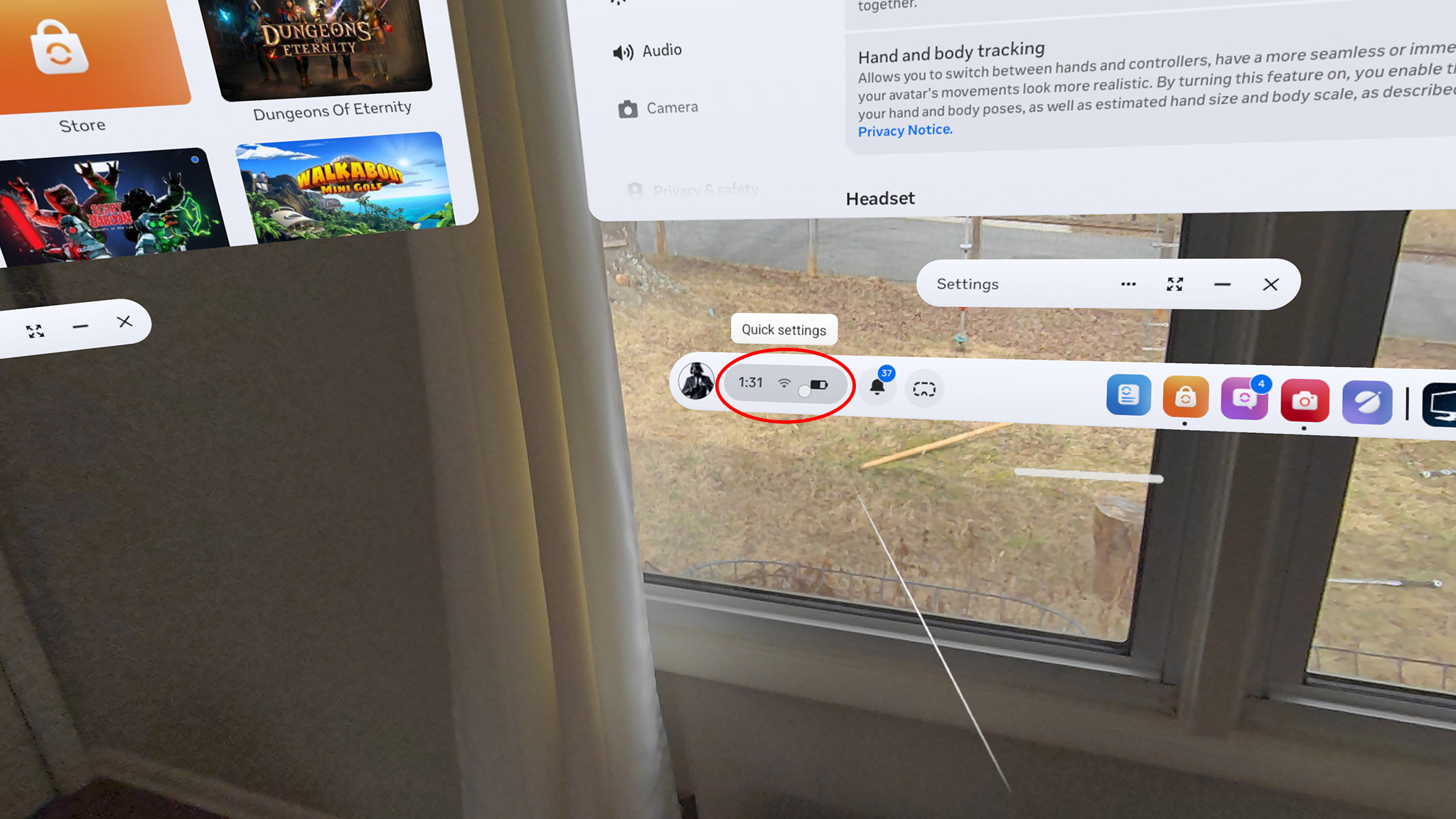 Εάν θέλετε απλώς να επιστρέψετε στο σπίτι, μπορείτε ακόμα να αγγίξετε γρήγορα το ευρετήριο και τον αντίχειρά σας μαζί για να εκτελέσετε την αρχική χειρονομία. Ενώ βρίσκεστε σε αυτό το μενού, μπορείτε ελεύθερα να τροποποιήσετε μερικές ρυθμίσεις όπως σας ταιριάζει. Ένα που είναι ιδιαίτερα χρήσιμο είναι τα “ελεγκτές με διπλό πάτημα για παρακολούθηση χεριού”, που σας επιτρέπει να κάνετε άμεση εναλλαγή μεταξύ μεθόδων παρακολούθησης που βασίζονται σε ελεγκτή και μεθόδων παρακολούθησης χεριών χωρίς να χρειάζεται να αφήσετε κάτω τα χειριστήρια και να περιμένετε να κοιμηθούν.