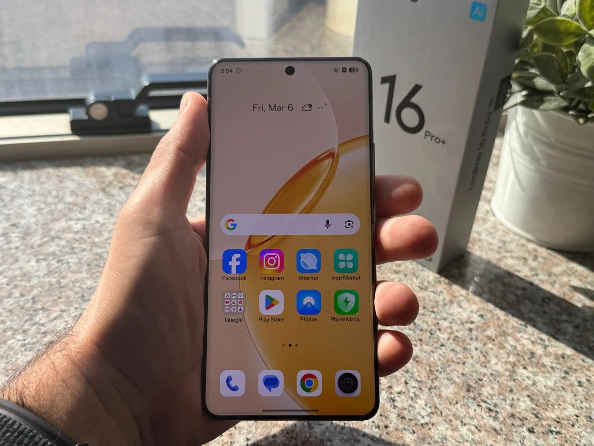 Οπτικά, η συσκευή κυριαρχείται από μια εξαιρετική AMOLED οθόνη 6,8 ιντσών, η οποία αποτελεί ένα από τα πιο ισχυρά χαρτιά του realme 16 Pro+ 5G. Η ανάλυση ορίζεται στα 1280 επί 2800 pixels, γνωστή και ως 1.5K, η οποία προσφέρει αξιοσημείωτη ευκρίνεια στα κείμενα και τα πολυμέσα χωρίς να επιβαρύνει την μπαταρία και τον επεξεργαστή στο βαθμό που θα το έκανε ένα πάνελ ανάλυσης 4K.