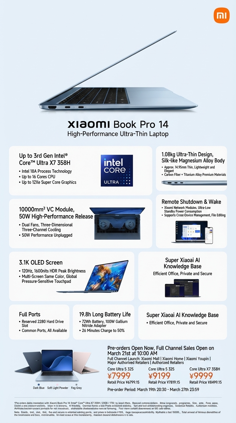 Η Xiaomi σηματοδότησε επίσημα την επιστροφή της στην κατηγορία των premium λεπτών και ελαφριών φορητών υπολογιστών μετά από τέσσερα χρόνια με την πολυαναμενόμενη κυκλοφορία του Xiaomi Book Pro 14. Αυτή η νέα γενιά φορητών υπολογιστών, που αποκαλύφθηκε στην πρόσφατη εκδήλωση παρουσίασης για την Άνοιξη Νέου Προϊόντος, εξισορροπεί έναν εξαιρετικά φορητό παράγοντα φόρμας με επιδόσεις σε επίπεδο επιτραπέζιου υπολογιστή.