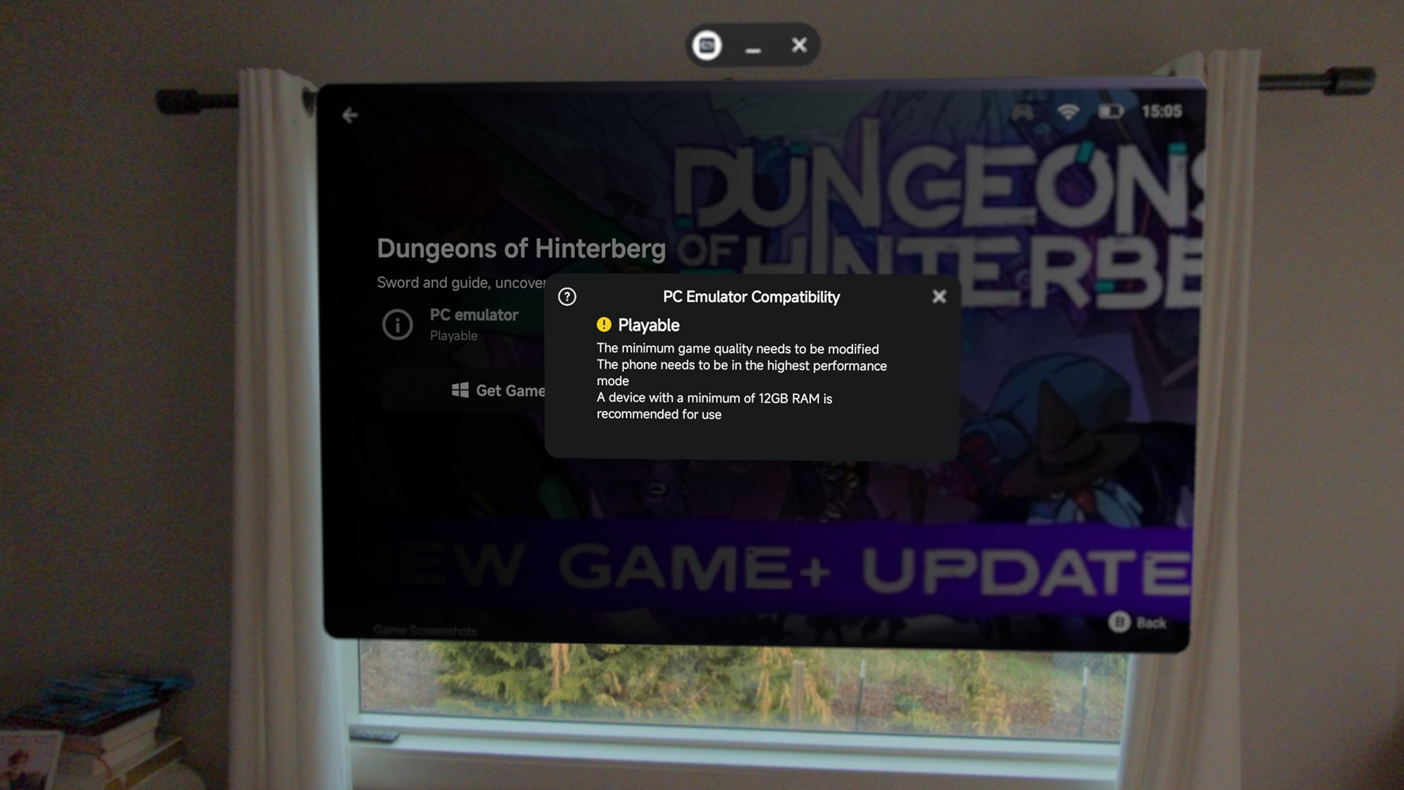Μπορείτε επίσης να διαμορφώσετε πρόσθετες επιλογές εάν θέλετε ή χρειάζεται να κάνετε προσαρμογές απόδοσης, αλλά βρήκα ότι οι προεπιλεγμένες ρυθμίσεις είναι περισσότερο από επαρκείς για τις ανάγκες μου. Εάν αντιμετωπίζετε προβλήματα ή απλά θέλετε να αγγίξετε τις γνώσεις σας στο GameHub, αυτό το βίντεο του YouTube είναι ένας εξαιρετικός πόρος και χρησιμοποιεί ένα τηλέφωνο που διαθέτει επεξεργαστή ελαφρώς πιο αργό από αυτό που υπάρχει στο Galaxy XR, επομένως αυτές οι ρυθμίσεις (ξεκινώντας από το σημείο 4:50) θα σας βοηθήσουν να αξιοποιήσετε στο έπακρο το σύστημα.