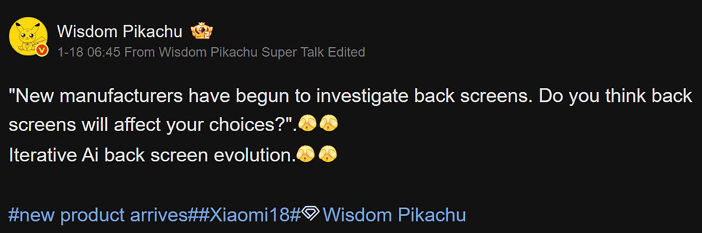Ο SmartPikachu αποκάλυψε ότι η Xiaomi έχει αρχίσει να εξερευνά προηγμένα υλικά πίσω οθόνης για τη σειρά Xiaomi 18. Και φέτος, η OEM έχει νέα σχέδια για αυτό το τμήμα.