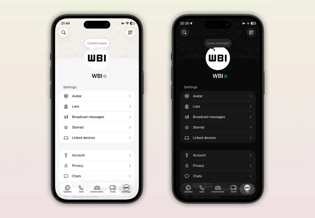 Τον περασμένο μήνα, WABetaInfo αναφέρθηκε ότι το TestFlight beta του WhatsApp αντικατέστησε την καρτέλα Ρυθμίσεις στην κάτω δεξιά γωνία της διεπαφής με μια νέα καρτέλα που ονομάζεται Εσείς.
