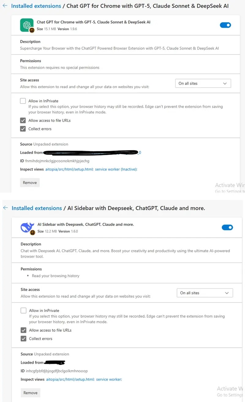 Οι επεκτάσεις στόχευαν συγκεκριμένα χρήστες δημοφιλών πλατφορμών AI όπως το ChatGPT και το DeepSeek, αντλώντας πλήρη ιστορικά συνομιλιών, διευθύνσεις URL επισκέψεων και τηλεμετρία περιήγησης απευθείας από ενεργές περιόδους σύνδεσης προγράμματος περιήγησης.