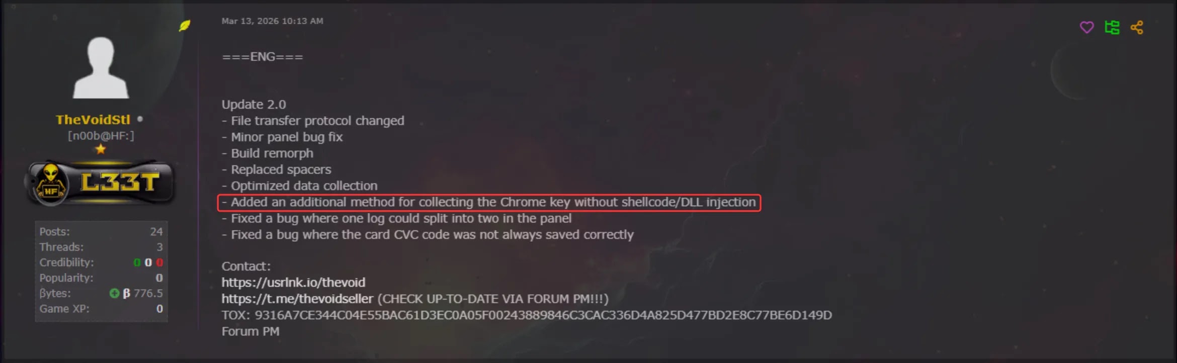 Οι αναλυτές της GenDigital εντόπισαν το VoidStealer ως πληροφοριοκλοπή Malware-as-a-Service (MaaS) που εμφανίστηκε για πρώτη φορά στα φόρουμ του darkweb, συμπεριλαμβανομένου του HackForums, στα μέσα Δεκεμβρίου 2025.