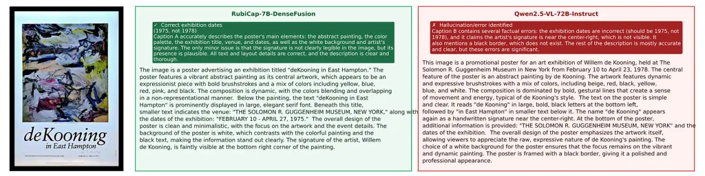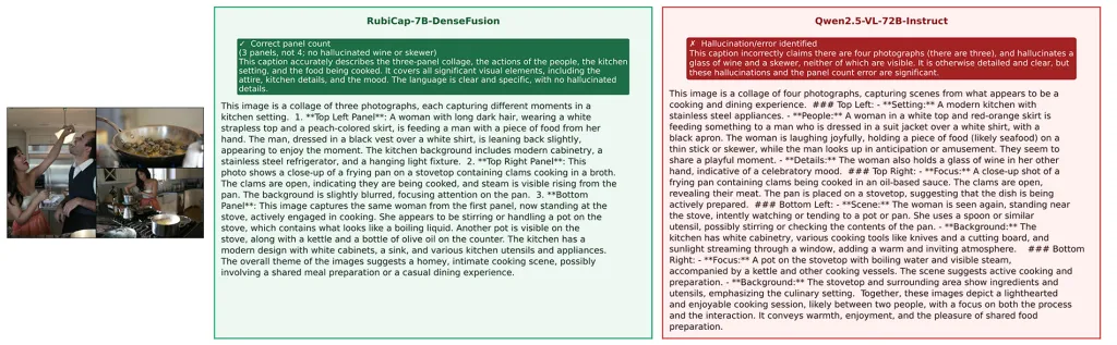 Ακολουθούν ορισμένες συγκρίσεις υπότιτλων μεταξύ RubiCap-7B-DenseFusion και Qwen2.5-VL-7B-Instruct: