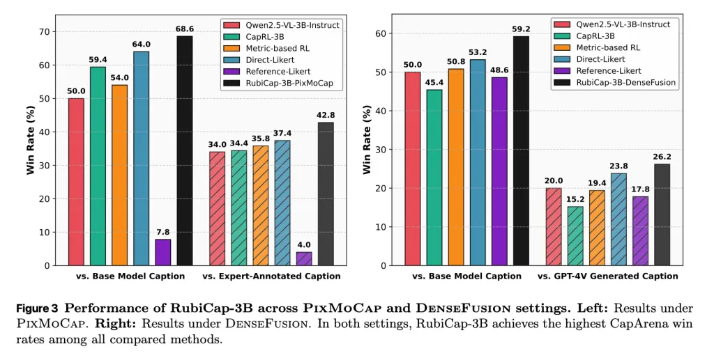 Όταν ειπώθηκαν και έγιναν όλα, οι ερευνητές παρήγαγαν τρία μοντέλα: RubiCap-2B, RubiCap-3B και RubiCap-7B, με 2 δισεκατομμύρια, 3 δισεκατομμύρια και 7 δισεκατομμύρια παραμέτρους, αντίστοιχα.