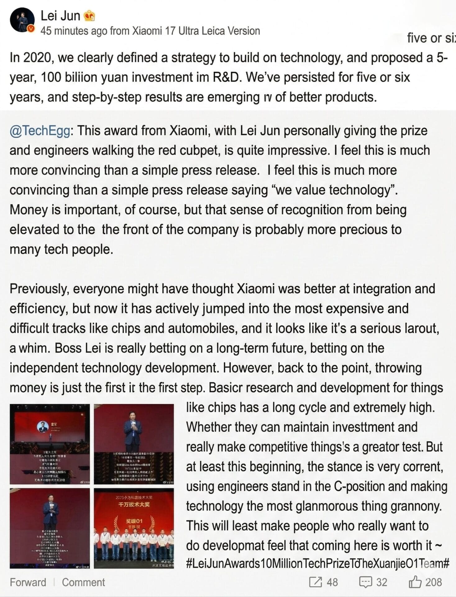 Ο Διευθύνων Σύμβουλος της Xiaomi, Lei Jun, μοιράστηκε πρόσφατα το όραμά του για την επόμενη γενιά κινητής τεχνολογίας κατά τη διάρκεια μιας αναφοράς με το CCTV. Η εταιρεία αυτή τη στιγμή δίνει προτεραιότητα στην ανάπτυξη ενός αποκλειστικού AIOS (Λειτουργικό Σύστημα AI)το οποίο στοχεύει να αλλάξει ριζικά τον τρόπο με τον οποίο οι χρήστες αλληλεπιδρούν με τις συσκευές τους. Αυτή η στροφή υποστηρίζεται από μια τεράστια οικονομική δέσμευση, καθώς η Xiaomi σχεδιάζει να επενδύσει περίπου 27,8 δισεκατομμύρια δολάρια (200 δισεκατομμύρια γιουάν) έρευνα και ανάπτυξη κατά τα επόμενα πέντε χρόνια.