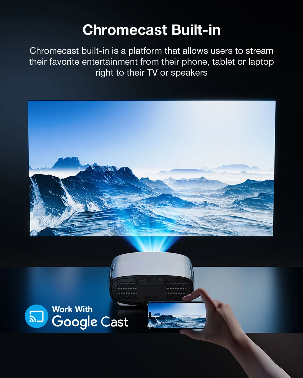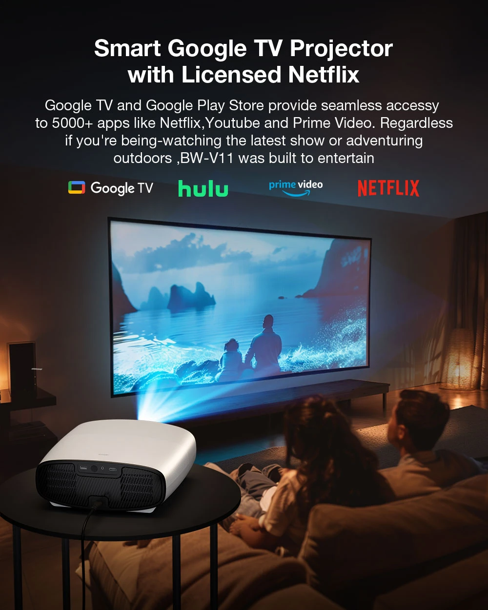 Ο Blitzwolf BW-V11 έχει WiFi 5 και Bluetooth 5.0, ενώ είναι εξοπλισμένος και με διπλά στέρεο ηχεία συνολικής έντασης 20W, οπότε με λίγα λόγια, έρχεται έτοιμος για δράση, δε θα χρειαστεί τίποτα παραπάνω απο ένα πανί προβολής, ή έναν κενό τοίχο.