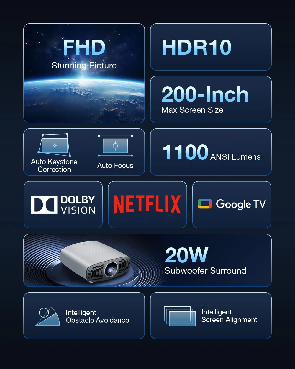 Ο προβολέας της Blitzwolf, έχει σύστημα προβολής κλειστού τύπου, για να αποφύγετε οποιαδήποτε είσοδο σκόνης, το οποίο σας χαρίζει Full HD ανάλυση, σε διαστάσεις μέχρι 200″, και φανταστική φωτεινότητα 1100 ANSI Lumens, ακόμα και αν δεν είναι το πραγματικό νούμερο, αλλα έχει πέσει μαγείρεμα, είναι αρκετά καλή ένδειξη για το οτι ο BW-V11 είναι εξαιρετικά φωτεινός.