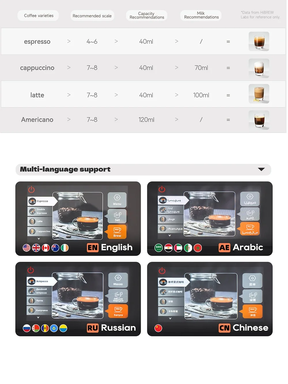 Η HiBREW H16 είναι μια πλήρως αυτόματη μηχανή καφέ, σχεδιασμένη για να φέρει την εμπειρία του specialty καφέ στο σπίτι ή το γραφείο. Με ενσωματωμένο μύλο άλεσης, σύστημα για αφρόγαλα και επιλογές για 6 διαφορετικά είδη ροφημάτων, αποτελεί μια ιδανική πρόταση για όσους αναζητούν ποιότητα, ευκολία και ευελιξία σε μία μόνο συσκευή.
