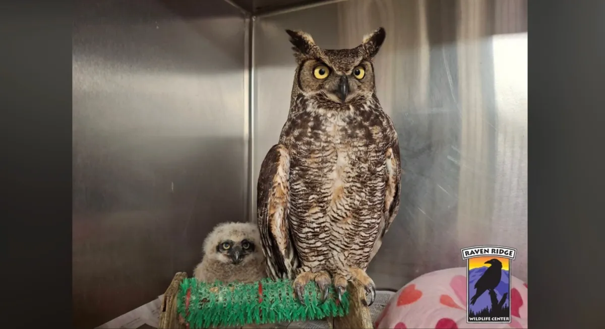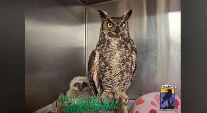 Πρόσφατα, το κέντρο διάσωσης έλαβε μια κλήση από έναν θηροφύλακα για μια μεγάλη κουκουβάγια με κέρατα (Bubo virginianus) που είχε παγιδευτεί σε ηλεκτρικό φράχτη. Ο θηροφύλακας κατάφερε να την απελευθερώσει, όμως η κουκουβάγια παρουσίαζε σοβαρά προβλήματα: δεν μπορούσε να σταθεί ή να πετάξει. Υποψιαζόμενοι πως ίσως είχε σπάσει κάποιο φτερό, την μετέφεραν στο Raven Ridge Wildlife Center.