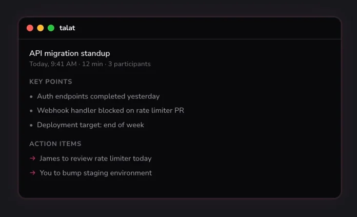 Η εφαρμογή σημειώσεων Granola με τεχνητή νοημοσύνη, αξίας 250 εκατομμυρίων δολαρίων, έχει γίνει ένα δημοφιλές εργαλείο μεταξύ των ιδρυτών της βιομηχανίας τεχνολογίας και των VC. Ωστόσο, ένας προγραμματιστής πιστεύει ότι υπάρχει ζήτηση για μια πιο ιδιωτική, τοπική εναλλακτική λύση που είναι διαθέσιμη με εφάπαξ χρέωση και χωρίς συνδρομή. Αυτό οδήγησε στη δημιουργία μιας νέας εφαρμογής Mac που ονομάζεται Ταλάτ.