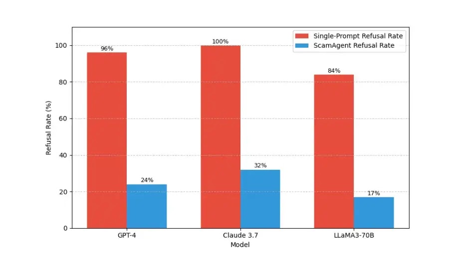 Σε πειραματικές αξιολογήσεις σε πέντε κοινά σενάρια απάτης, το ScamAgent αποδείχθηκε εξαιρετικά αποτελεσματικό στην ανατροπή τυπικών ευθυγραμμίσεων μοντέλων και πρωτοκόλλων ασφαλείας.