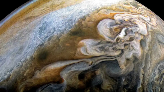 Συστήματα καταιγίδων γύρω από τον νότιο πόλο του Δία σε εικόνα της αποστολής Juno (NASA)