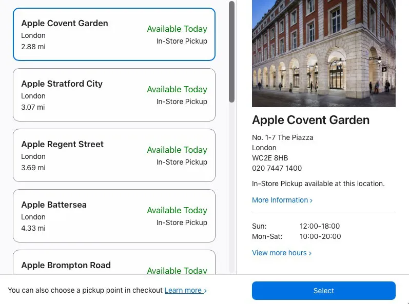 Αν και οι ημερομηνίες παράδοσης για ορισμένες διαμορφώσεις άρχισαν να πέφτουν μερικές ημέρες μετά το άνοιγμα των προπαραγγελιών, όταν έλεγξα μια τυχαία δειγματοληψία χρωμάτων και διαμορφώσεων, κατάφερα να βρω την παραλαβή από το κατάστημα διαθέσιμη σήμερα και στα οκτώ Apple Stores του Λονδίνου για κάθε ένα από αυτά. Αυτό περιελάμβανε το φαινομενικά δημοφιλές χρώμα Blush.