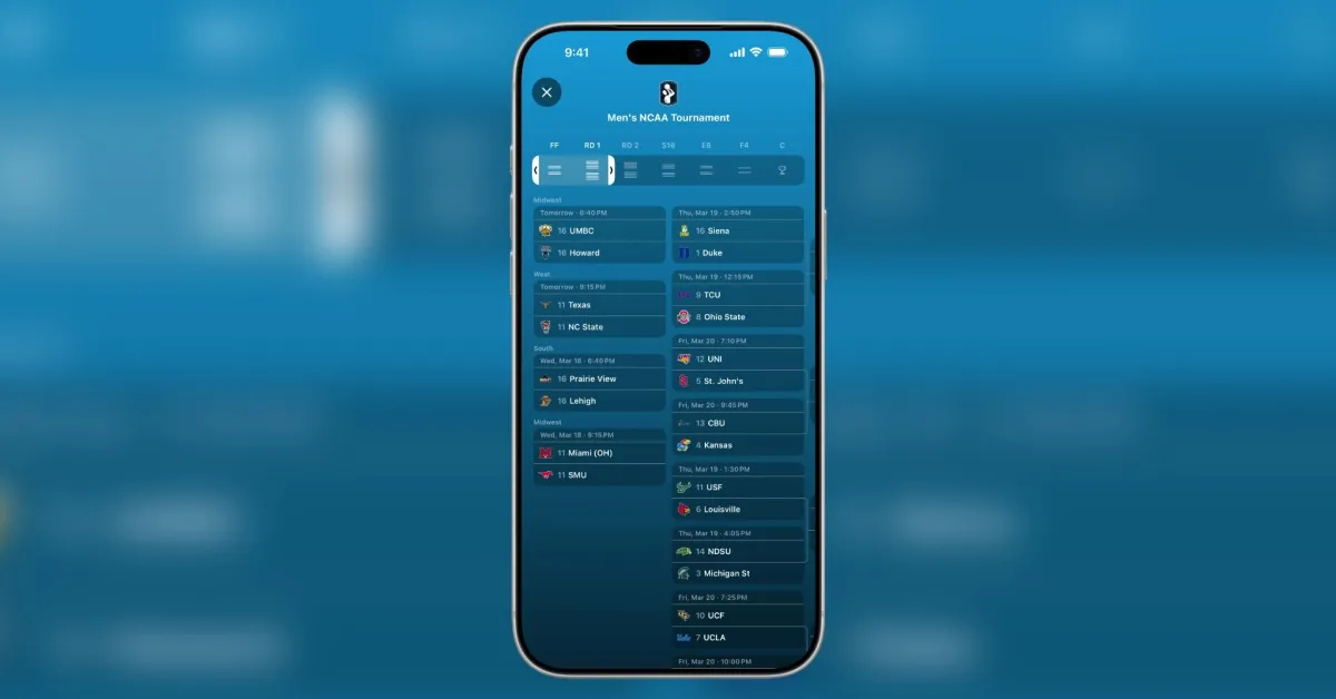 Τον περασμένο μήνα, η Apple αναβάθμισε την εφαρμογή Apple Sports με νέες δυνατότητες παρακολούθησης τουρνουά NCAA, μια τεράστια επέκταση ποδοσφαίρου και τη δυνατότητα παρακολούθησης πρωταθλημάτων και ομάδων σε περισσότερες αγορές. Τώρα που το March Madness είναι εδώ, ρίχνουμε μια ματιά στο πώς εμφανίζεται το χαρακτηριστικό στην εφαρμογή.