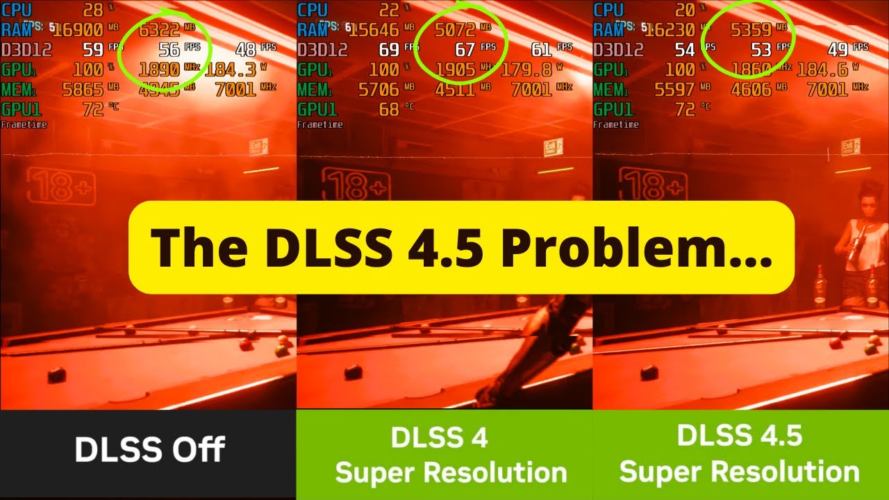 Το RTX 2060 υπέφερε πολύ άσχημα αφού διαθέτει μόνο 6 GB VRAM και είναι η πιο αργή GPU RTX στη σειρά. Γνωρίζουμε από την τεκμηρίωση της NVIDIA ότι το DLSS 4.5 μπορεί να καταβροχθίσει σχεδόν το διπλάσιο της χωρητικότητας VRAM στις κάρτες της σειράς RTX 20/30 έναντι της RTX 40/50. Σε Cyberpunk 2077, σε 1080p, Ultra Settings και DLSS σε Ποιότητα, το Preset M στο RTX 2060 ήταν 7% πιο αργό από το Native TAA. Από την άλλη πλευρά, το Preset K έδωσε περίπου 20% ώθηση απόδοσης. Φυσικά, η οπτική ποιότητα ήταν επίσης κατώτερη, αλλά λαμβάνοντας υπόψη ότι το Preset M δεν μπορούσε να ταιριάξει ούτε με την απόδοση ή την οπτική ποιότητα του Native, είναι άχρηστο για τις GPU της σειράς RTX 20.