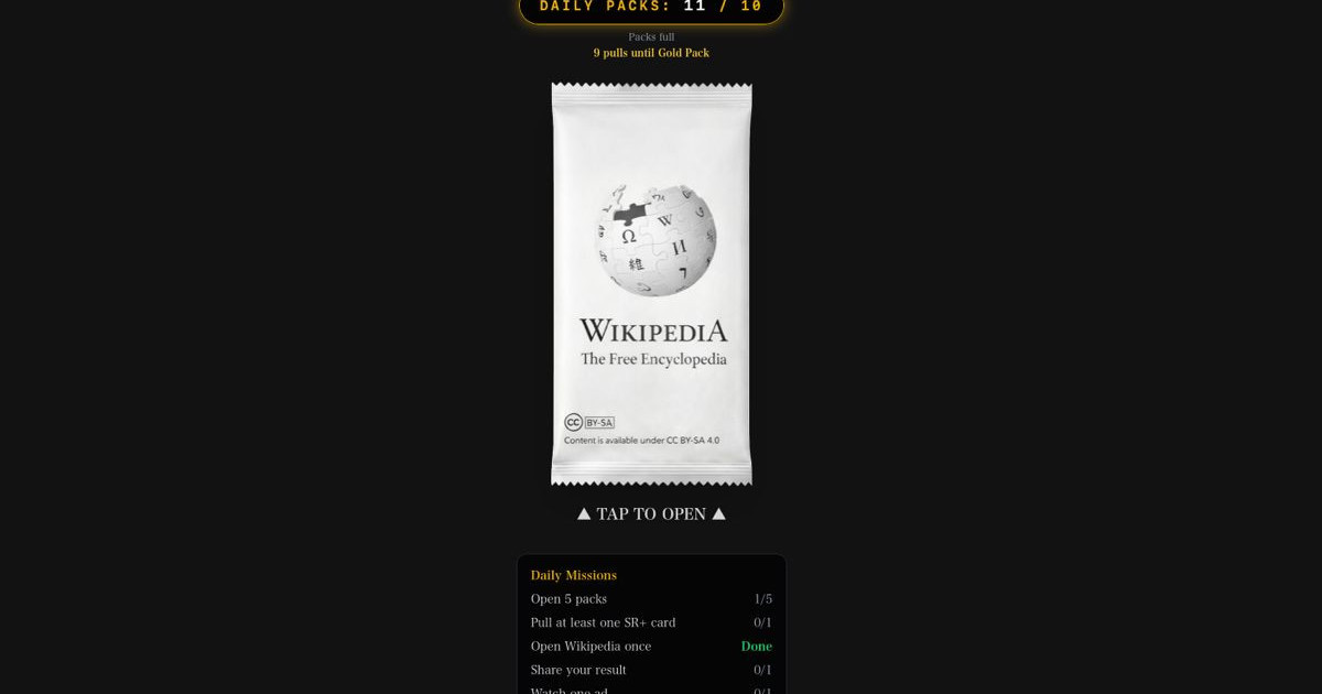 Πρόκειται για ένα δωρεάν browser-based παιχνίδι που παίρνει τη μεγαλύτερη διαδικτυακή εγκυκλοπαίδεια της ανθρωπότητας και τη μετατρέπει σε ένα πλήρως λειτουργικό, παιχνίδι συλλογής καρτών ενσωματώνοντας μηχανισμούς gacha. Χωρίς κανένα οικονομικό κόστος, εγγραφές ή κρυφές χρεώσεις, οι χρήστες καλούνται να ανοίξουν ψηφιακά φακελάκια, να συλλέξουν άρθρα και να τα ρίξουν στη μάχη εναντίον άλλων παικτών.