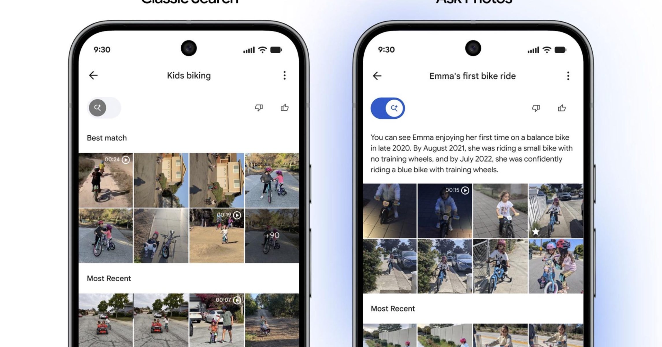 Αυτή την εβδομάδα, ο αντιπρόεδρος του Google Photos, Shimrit Ben-Yair, το πήρε Κελάδημα να αναγνωρίσει ότι η Google έχει «δεσμευτεί να κάνει σωστά αυτήν την εμπειρία» όσον αφορά το Google Photos και τις δυνατότητες αναζήτησης AI. Συνέχισαν παρουσιάζοντας μια αλλαγή στην αναζήτηση που θα σας επιτρέψει να κάνετε εναλλαγή μεταξύ των αποτελεσμάτων Κλασικής Αναζήτησης και Ερώτησης φωτογραφιών. Από την εικόνα που μοιράστηκαν, αυτό δεν μοιάζει απαραίτητα με αλλαγή στη λειτουργία αναζήτησης, αλλά μόνο με τα αποτελέσματα.