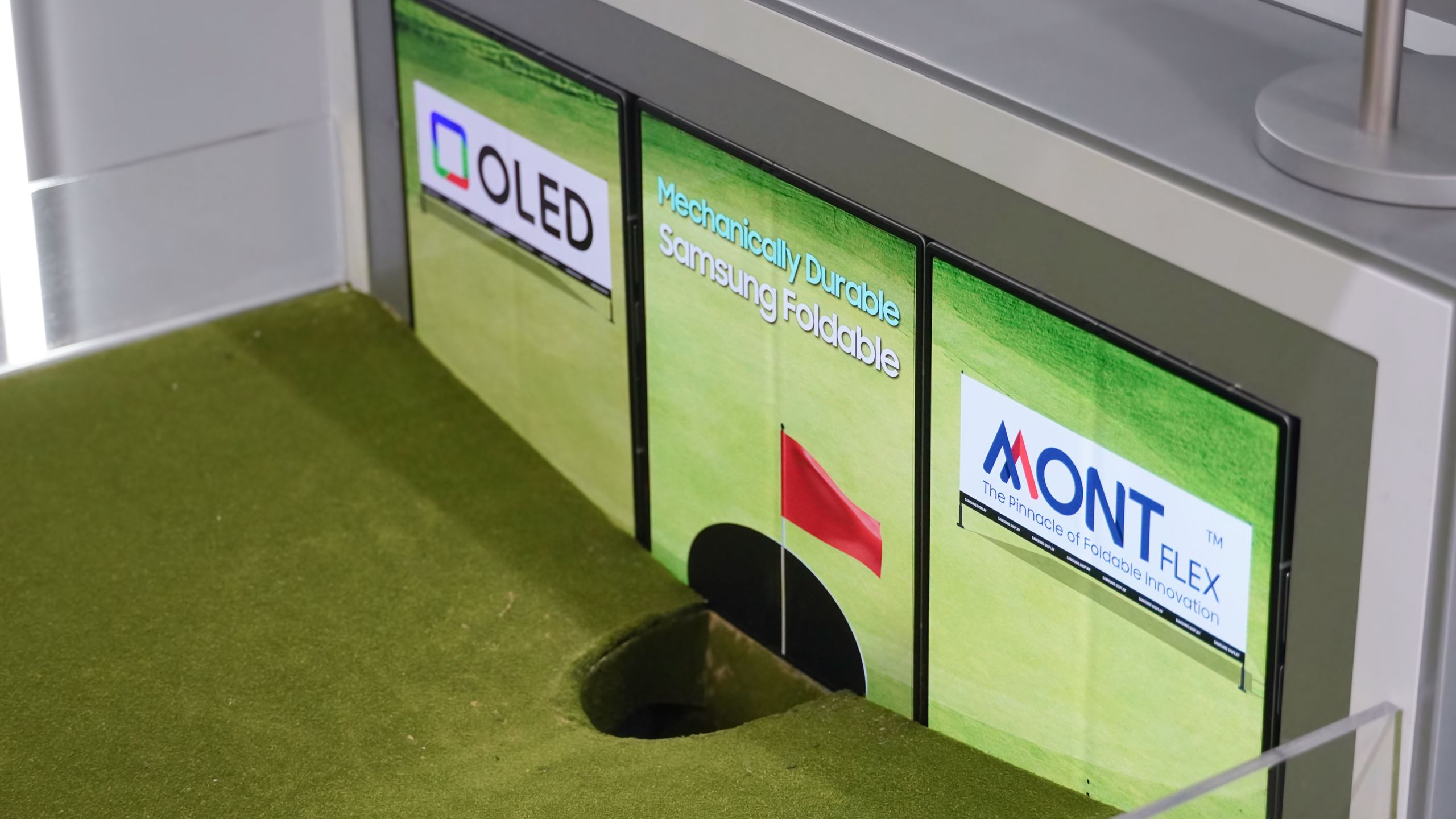 - Η Samsung Display παρουσίασε έναν προσομοιωτή στο MWC 2026 που λάνσαρε μπάλες του γκολφ σε πτυσσόμενα τηλέφωνα.
