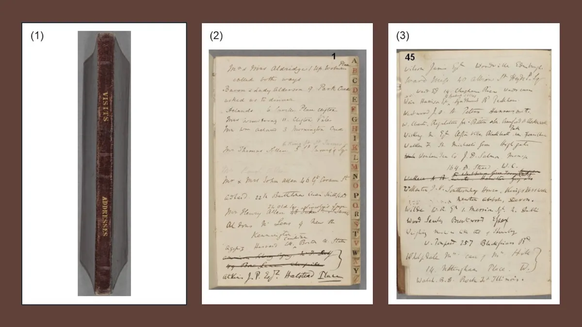 Είναι ενδιαφέρον ότι οι πρώτες καταχωρήσεις του βιβλίου διευθύνσεων προέρχονται από τη σύζυγο του Δαρβίνου, την Έμμα, λίγο μετά τον γάμο του ζευγαριού τον Ιανουάριο του 1839. Ο ίδιος ο Δαρβίνος ανέλαβε σύντομα τη συντήρηση του βιβλίου και βασίστηκε στο περιεχόμενό του μέχρι τον θάνατό του το 1882.